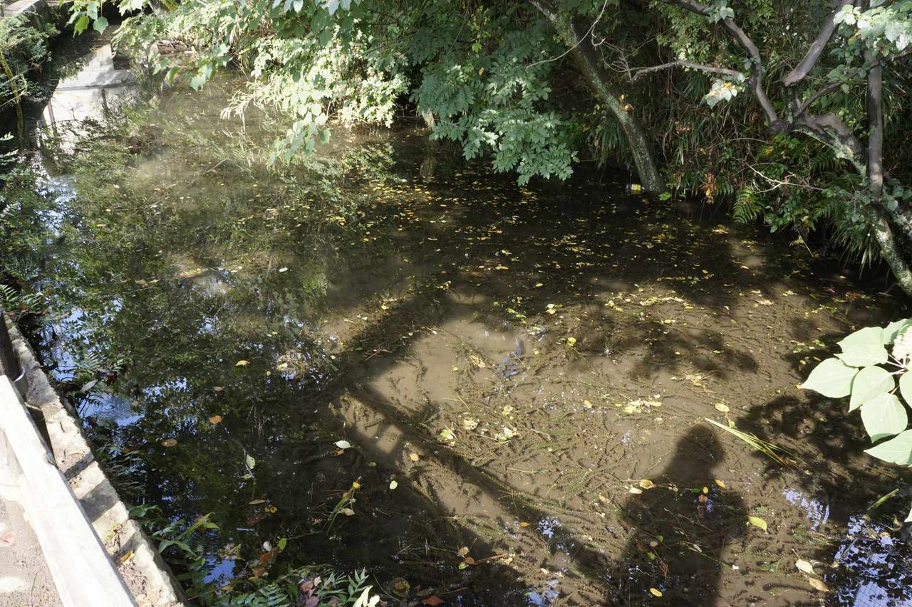 八の釜憩いの森の小川の中には丸々と大きく太った鯉が泳いでおり