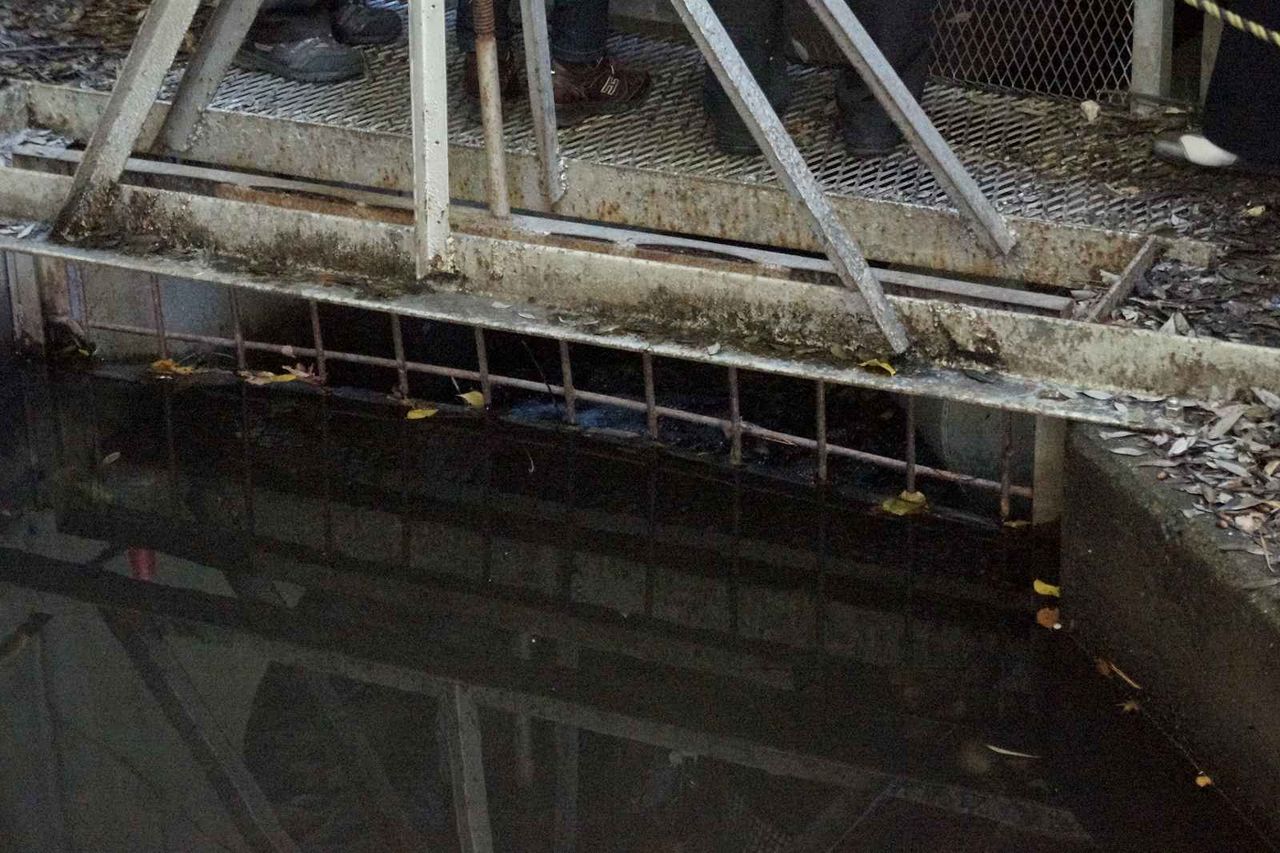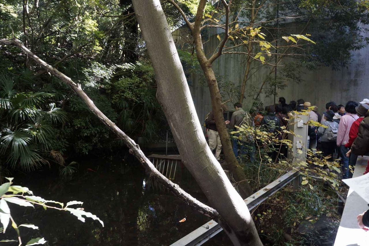 水路奥の見学窓からは、中央研究所より野川へと水が流れていく様が見学できます。