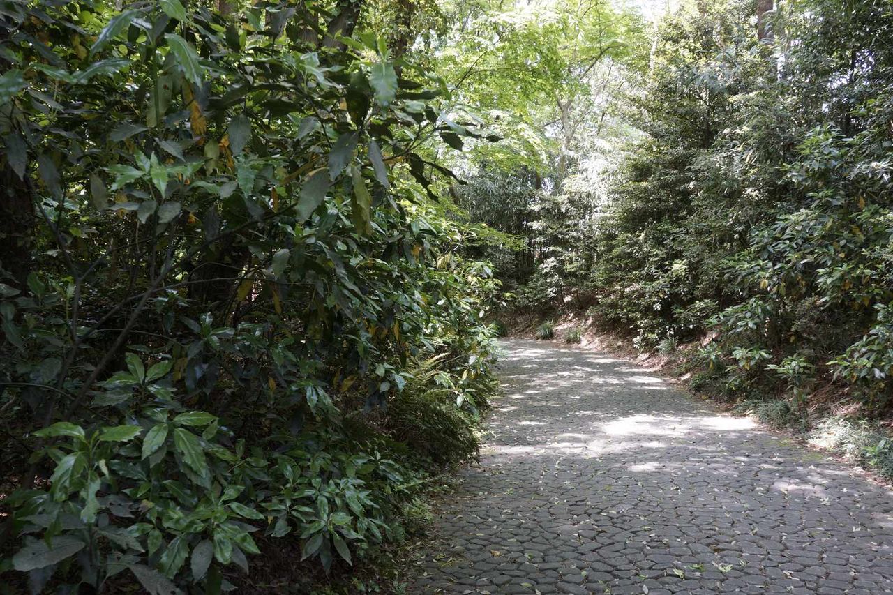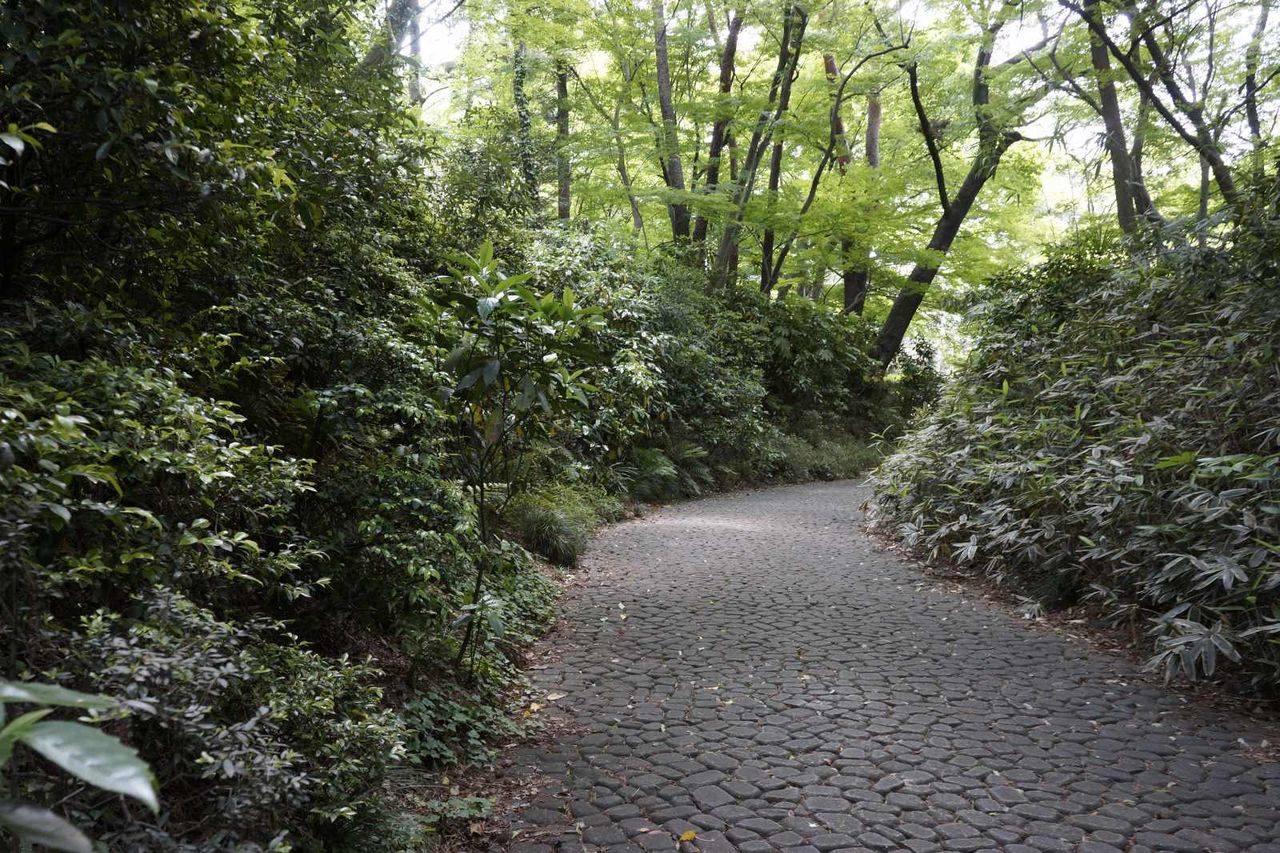 入り口から庭園まではしばらくのあいだ下り坂が続きます。
