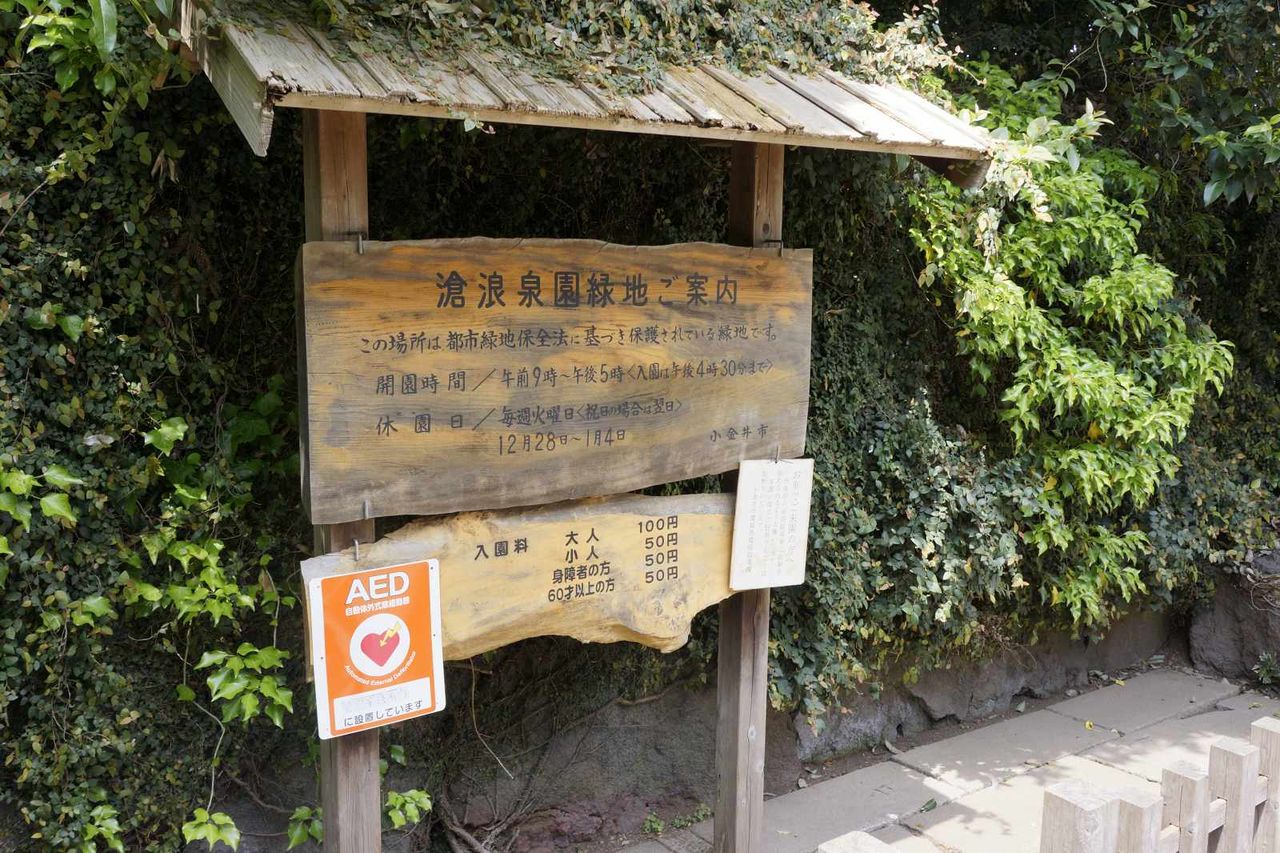ハケ下の看板に解説があり、滄浪泉園のある小金井市の小金井は