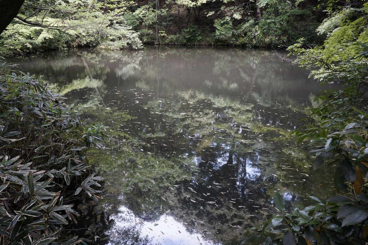 湧水が流れ着く池を見ると、池自体に湧水がある訳ではないので