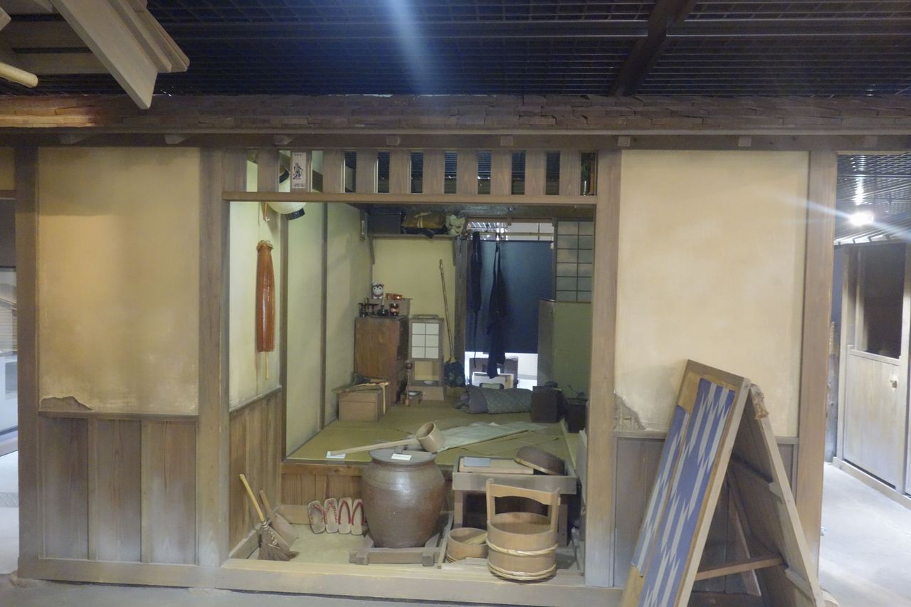 奥に施設の壁やライトがあるのでちょっぴり違和感がありますが、しっかりと江戸家屋が再現されているコーナーがありました。